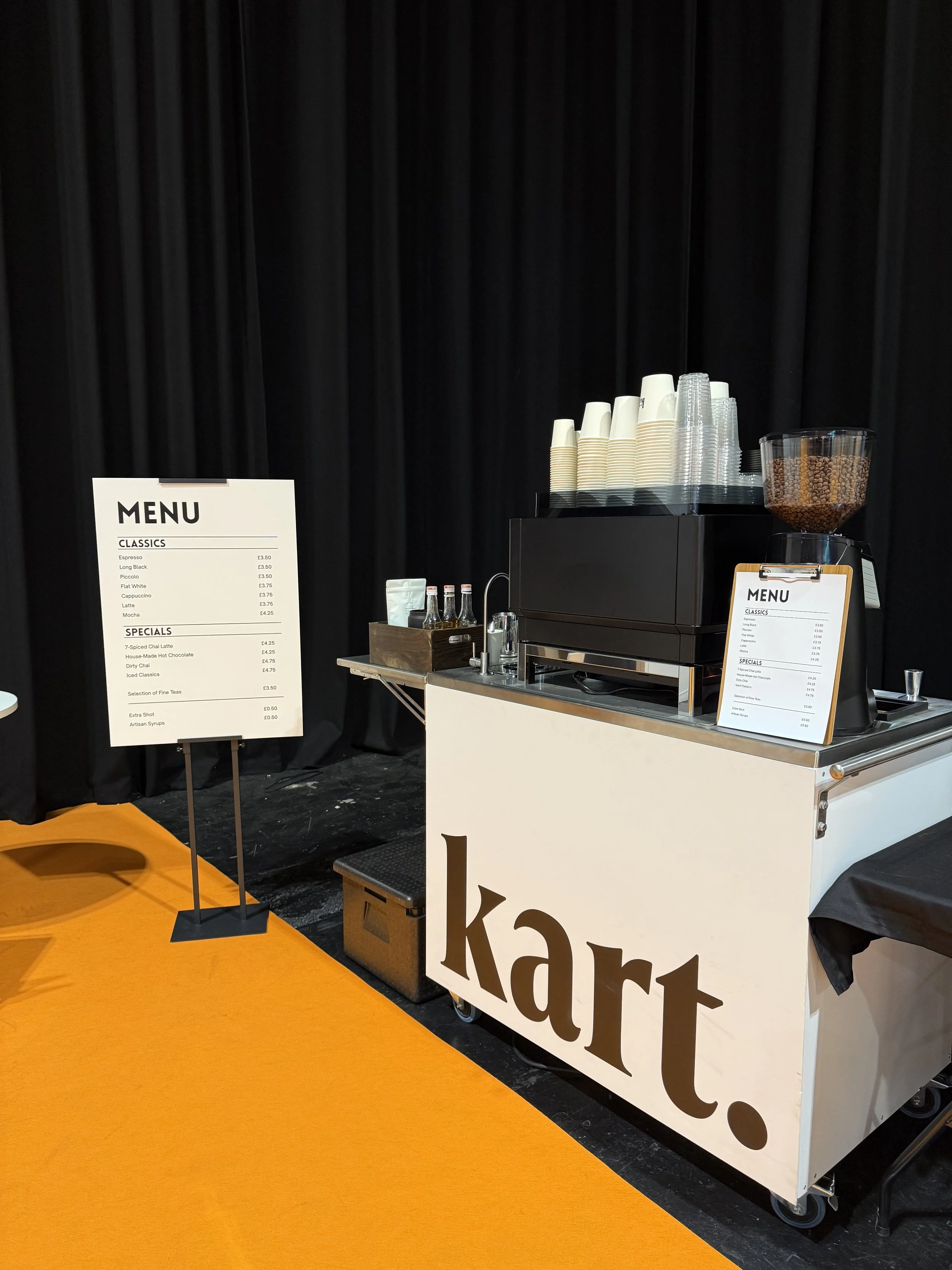 At Kart Coffee, we bring the café to you with our mobile speciality coffee bars, designed specifically for film and TV productions across the UK. Whether you're filming a feature in the Scottish Highlands or capturing scenes for a series in central London, we deliver high-quality, barista-made coffee directly to set.